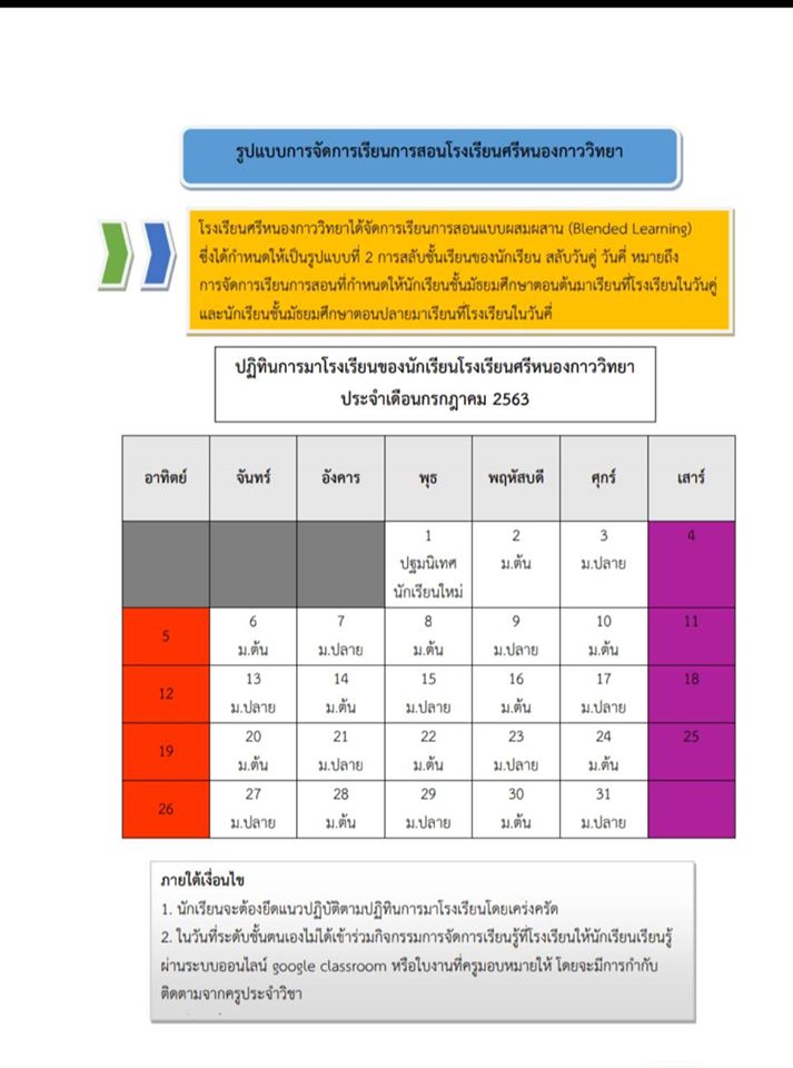 เพื่อให้การปฏิบัติตนเป็นไปตามแนวทางการจัดการเรียนการสอนในสถานการณ์แพร่ระบาดของโรคติดเชื้อโคโรนา ขอให้เดินทางกลับเข้ามายังพื้นที่ และกักตัวเป็นเวลา 14 วัน ตามมาตรการป้องกันตนเอง เพื่อเตรียมพร้อมเปิดภาคเรียนในวันที่ 1 กรกฎาคม 2563 ที่จะถึงนี้ นักเรียนสามารถศึกษาคู่มือได้จากรายละเอียดที่แนบมาพร้อมนี้นะคะ