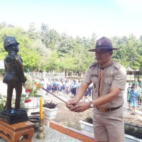 นายธนโชติ ศรีธรราษฎร์ ผู้อำนวยการโรงเรียน นางเพ็ญวิศา พระสุรัตน์ รองผู้อำนวยการโรงเรียนนำคณะครู นักเรียนโรงเรียนศรีหนองกาววิทยา ทำพิธีราชสดุดี ลูกเสือ ณ บริเวณหน้าเสาธงโรงเรียนศรีหนองกาววิทยา
