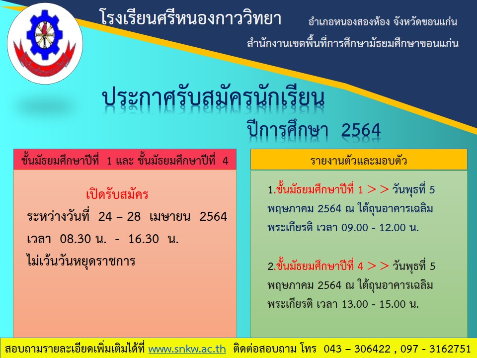 ประกาศรับสมัครนักเรียน ประจำปีการศึกษา 2564